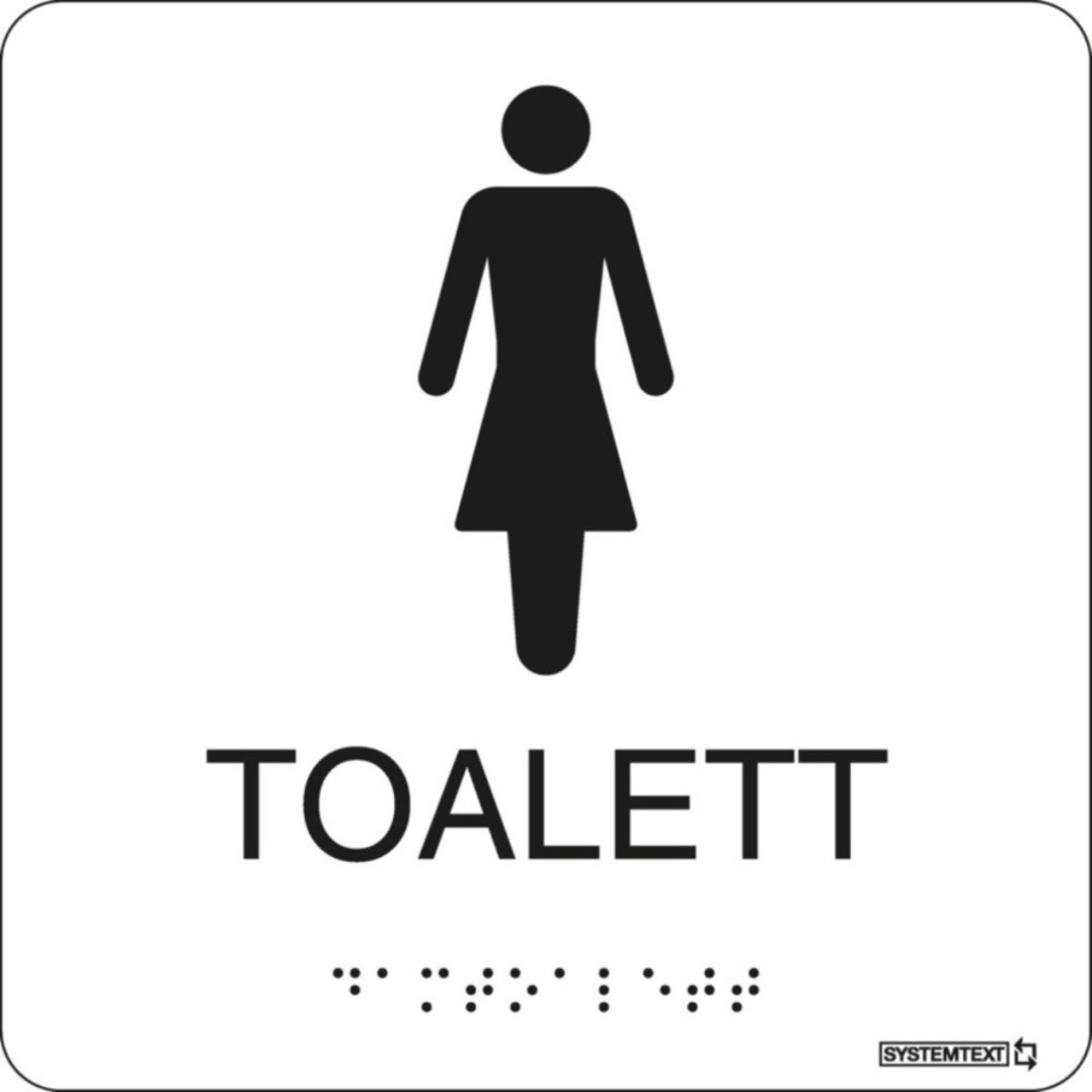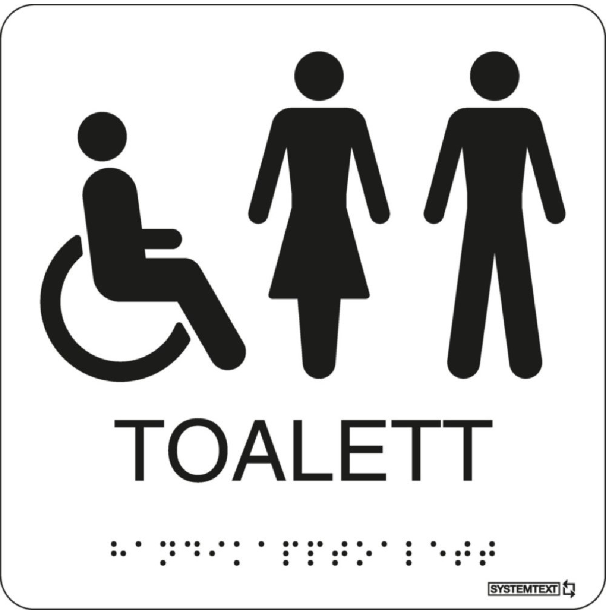 Taktil skylt "Toalett Rullstol/Dam/Herr" Vit