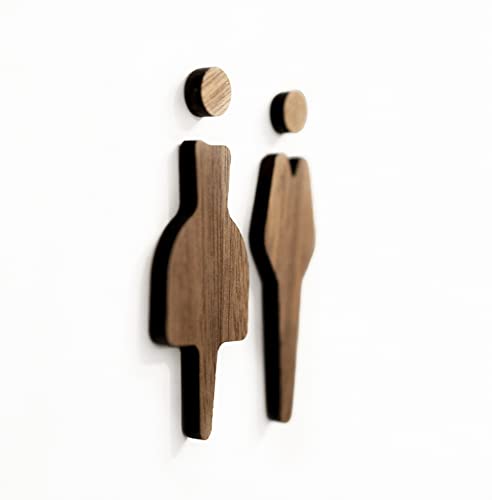 NOIR.DESIGN Unisex toalettskylt för dörr WC-platta – Loo – självhäftande – toalett man kvinna skylt former dekorativt hem badrum kontor hotell pubar kön neutral trä (valnötsformer 8,5 x 6 cm)