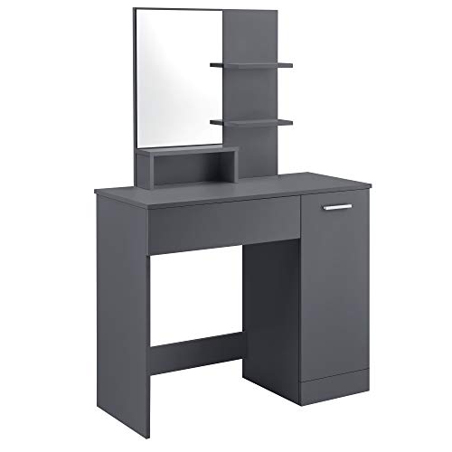 [en.casa] Toalettbord med spegel, skåp och låda, toalettbord, 138 x 90 x 38 cm, sminkbord med hyllor spånskiva, mörkgrått
