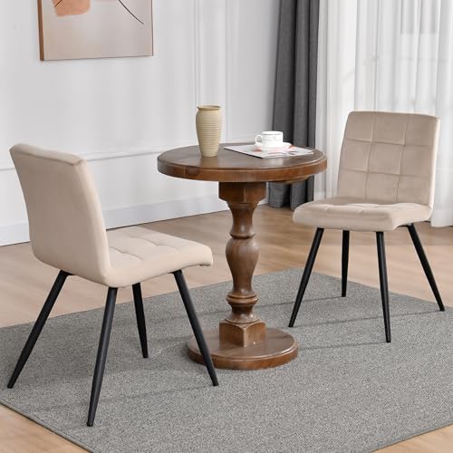 DUHOME Matstol set med 2 köksstol med ryggstöd toalettbord sammet vadderad sits för vardagsrum, sovrum, restaurang, beige
