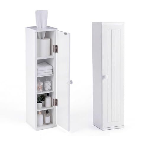 COSTWAY Badrumsskåp toalettpapper skåp vit, toalettpappershållare toalettskåp med 3 avtagbara hyllor, badrumsskåp stående skåp sidoskåp för vardagsrum badrum