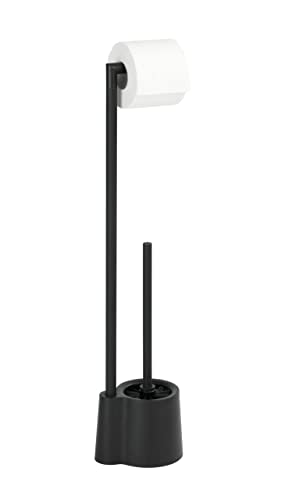 WENKO Avola stående toalettborsthållare och toalettpappershållare, tillverkad av rostfritt stål och robusta plastelement, 13 x 70 x 16 cm, matt svart