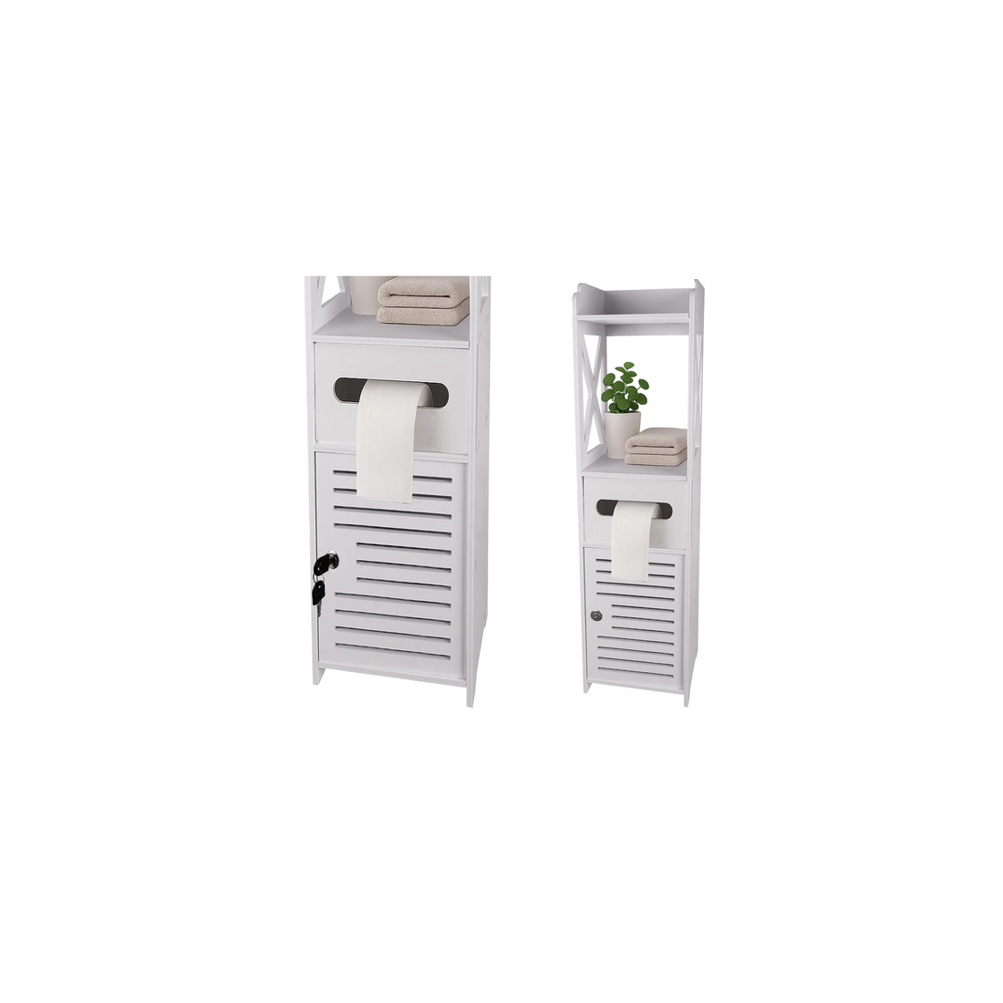 Badrumsskåp med lås, Toalettpappershållare – Vit