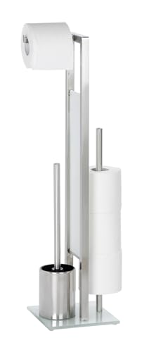 WENKO Rivalta Toalettrullehållare med toalettborsthållare, Silver, 18 x 19 x 69 cm