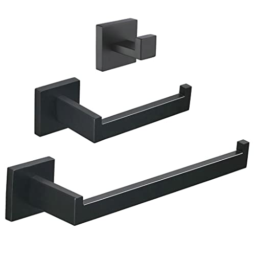 SHUNLI Svart badrumstillbehör set handduksstång toalettrullehållare rockkrok väggmonterad SUS304 rostfritt stål