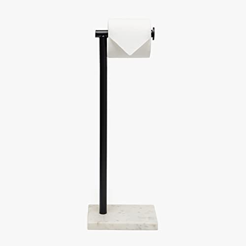 ACL piedestal toalettrullehållare – modern fristående toalettpappershållare – toalettrullehållare med marmorbas – förvaring av toalettpappershållare (vit marmorbas, svart finish)