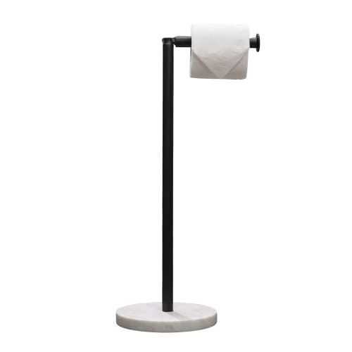 ACL toalettrullehållare – modernt svart metallstativ med rund marmorbas för modern badrumsdekor (svart)