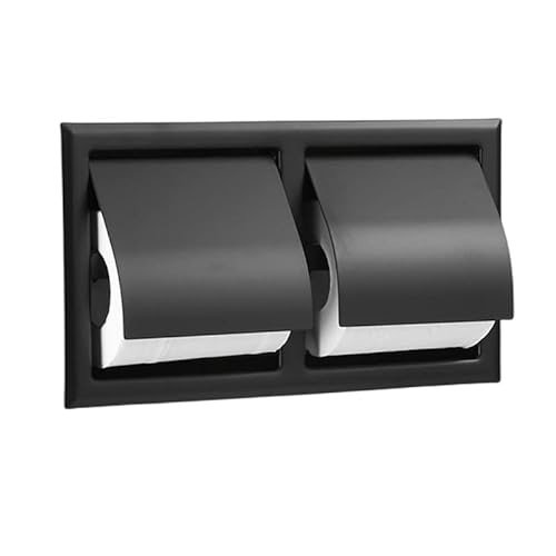 Dubbel rulle infälld toalettpappershållare 304 rostfritt stål toalettrullehållare badrum väggmonterad näsdukshållare inkluderar bakre monteringsfäste - svart-dubbel