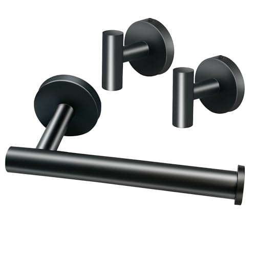 Generisk 304 rostfritt stål toalettrullehållare väggmonterad svart set - toalettpappershållare näsduksdispenser för badrum och kök med 2-pack krokar