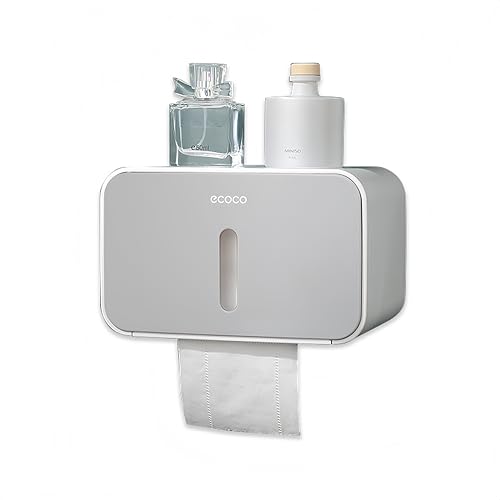 Meiyijia toalettrullehållare, självhäftande, väggmonterad toalettrullehållare, med vattentätt och dammskydd, kan användas rullpapper, vikbar pappershandduk multifold pappersdispenser, grå Svart…