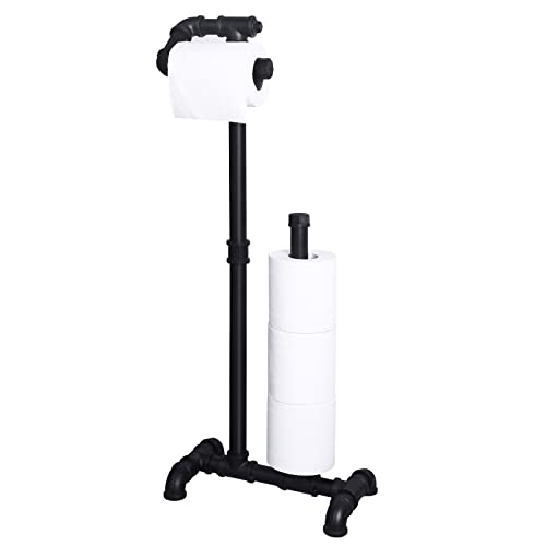 HouseAid Fristående industriella rör toalettpappershållare för badrum, stativ rustik järn toalettrullehållare med reserv, vintagestil, matt svart