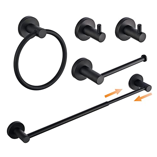 Svart badrumstillbehör set – justerbar 33–60 cm handduksstång toalettrullehållare handduksring 2 st handdukskrokar – väggmonterad SHUNLI
