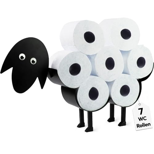 Naturalspring® | Dori – toalettpappershållare får | toalettpappersdekoration svart | för 42 och 44 mm rullar | toalettrullehållare WC | reservrullshållare (3 x – stapelbar (svart))