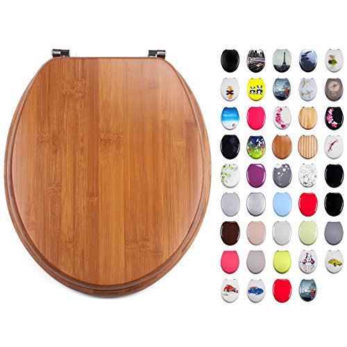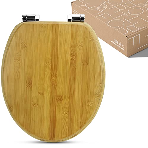 Sanfino® toalettsits av bambu med automatisk sänkning, äkta träutseende och hög kvalitet, hög sittkomfort, gjord av hållbart äkta trä, enkel montering inklusive monteringsinstruktioner (svenskt språk inte garanterat) – ”Dark Brown”