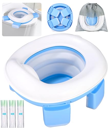GUHAOOL Toalettsits barn, potta för på resande fot 3-I-1 resepotta hopfällbar barn med 40 pottpåsar, anti-halk design potträningssitsar potträningssits för baby (blå)