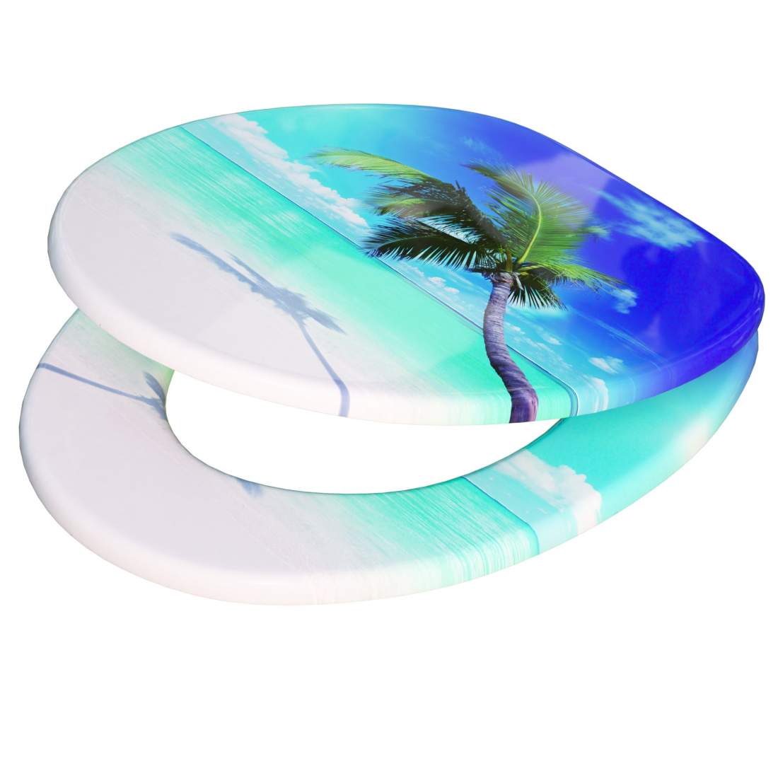 Mjukstängande toalettsits, palmdesign, MDF-trä, tyst