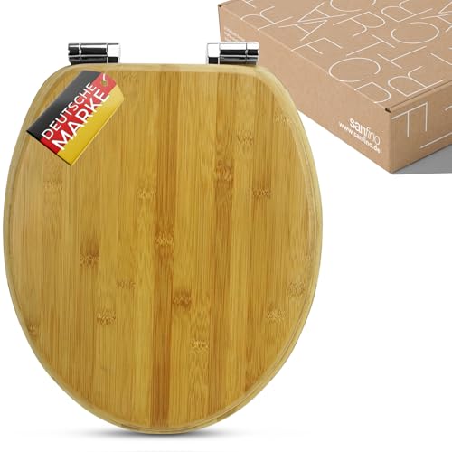 Sanfino® toalettsits av bambu med automatisk sänkning, äkta träutseende och hög kvalitet, hög sittkomfort, gjord av hållbart äkta trä, enkel montering inklusive monteringsinstruktioner (svenskt språk inte garanterat) – ”Dark Brown”