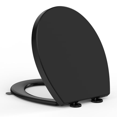 YEAUPE PRO Soft Close Toilet Seat, O-Shape Universal Toalettsits with Quick-Release, Easy to Clean, Super Stable (150 kg Load), Black, 44.6×37.2 cm