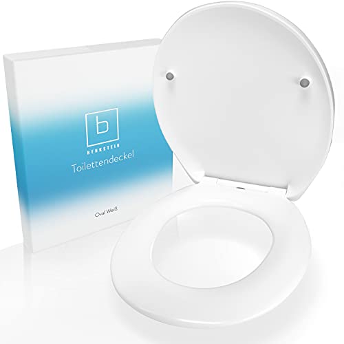 Benkstein® Premium toalettsitsöverdrag vit oval snabbfrigörande och mjuk långsam stängning stängning automatiskt. Antibakteriell duroplast och avtagbar rostfritt stål universal toppfäste wc tolite