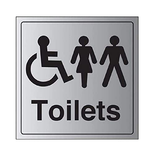 VSafety General door-Disabled/gents/dam toalettskylt – 200 mm x 200 mm – självhäftande aluminiumeffekt