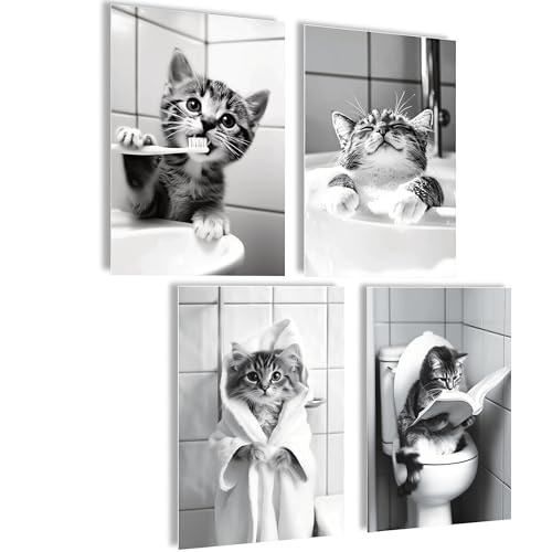 Mojoliving Badrum och Gäster Toalettskylt - Affisch Set 4 x A4 (21 x 30 cm) - WC Dekoration för Gästtoalett med Katt
