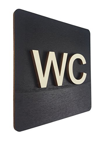 NOIR.DESIGN Unisex toalettskylt för dörr WC-platta – Loo – självhäftande – toalett man kvinna skylt former dekorativt hem badrum kontor hotell pubar kön neutral trä (valnötsformer 8,5 x 6 cm)