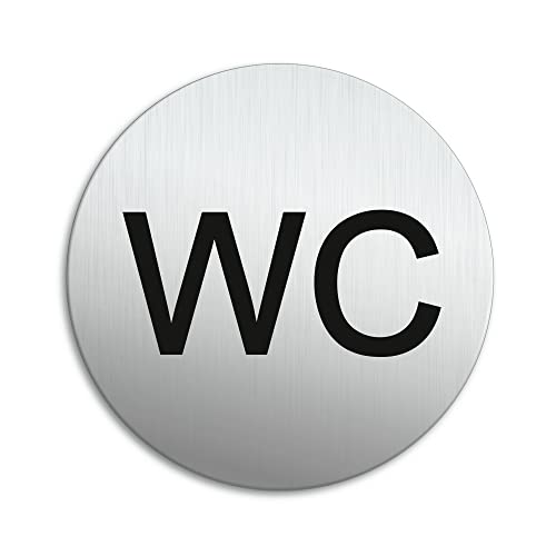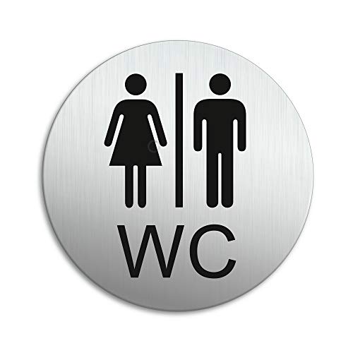 Skylt WC toalettskylt aluminiumskylt i rostfritt stål Ø 100 mm reptålig UV-resistent självhäftande