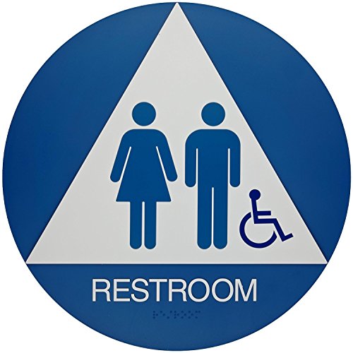 Brady 106184 11 bredd x 10 höjd plast, vit på blå California/ADA toalettskylt, legend toalett