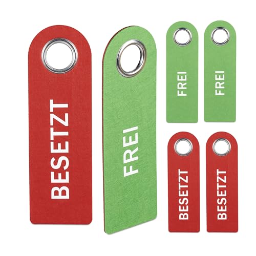 Relaxdays Dörrskylt, set om 6, toalettskylt för upphängning, båda sidor, badrum och kontor, filt dörrhängare, röd/grön
