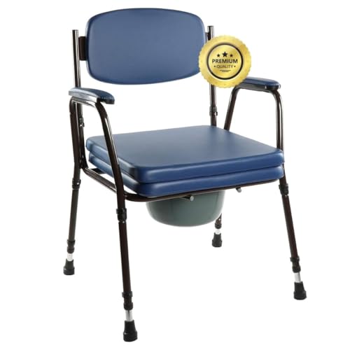 OrtoPrime Vadderad toalettstol - justerbar bärbar urinalstol - bärbar vakuum med hopfällbar bidé - badstol för äldre - Geriatrisk badstol - bekväm och robust