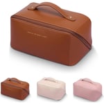 Kosmetikväska, Sminkväska i Läder med Fack och Handtag Bärbart Sminkväska Rese-Toalettväska för Kvinnor (Brun)