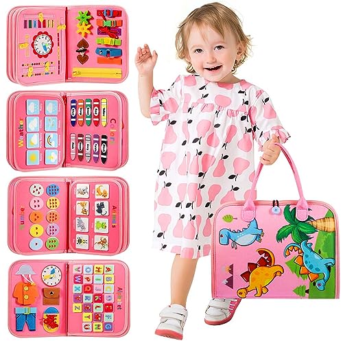 FREYBLI Busy Board Montessorileksak för småbarn, 5 nivåer, aktivitetstavla, Montessori-leksak, från 1, 2, 3 och 4 år, lära ut grundläggande kunskaper, för flickor