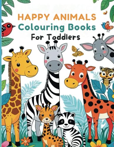 Happy Animals Colouring Book For Toddle: 120 Pages of Adorable Funny Easy Engaging Activity Book