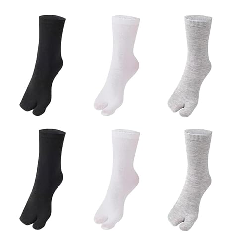 6 par delade tåstrumpor för kvinnor japansk Geta bomullsstrumpor Tabi Flip Flop strumpor elastisk bomull delad tå strumpor (2 x vit+2 x grå+2 x svart), Vit grå svart, one size