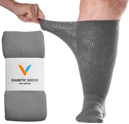 Viasox EasyStretch™ Diabetic Socks for Men & Women, Non Binding Top, Seamless Toe, Loose Fit (Gray, Large)