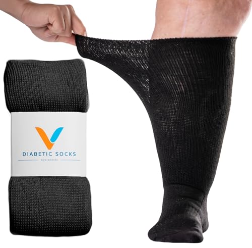 Viasox EasyStretch Diabetic Socks for Men & Women, Non Binding Top, Seamless Toe, Loose Fit (Black, Medium)