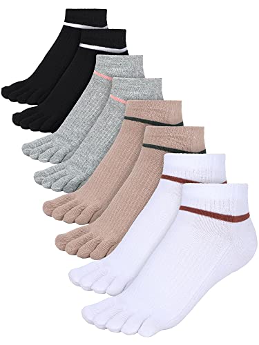 Bencailor 4 Pair Women Toe Socks Striped Cotton Crew Socks with Toes Separated for Women Men Athletic Running(Black, White, Grey, Khaki)