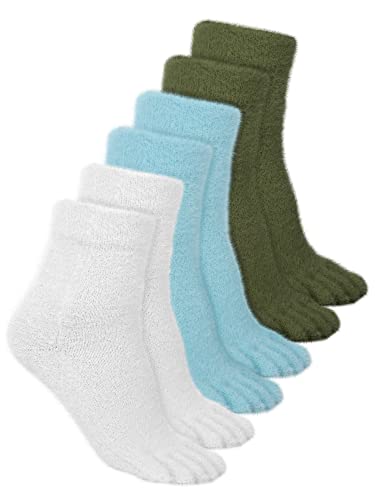 Bencailor 3 Pairs Women Fuzzy Toe Socks Womens Soft Fuzzy Plush Warm Fluffy Winter Home Slipper Socks for Women Men, Size 5-9(Green, Blue, White)