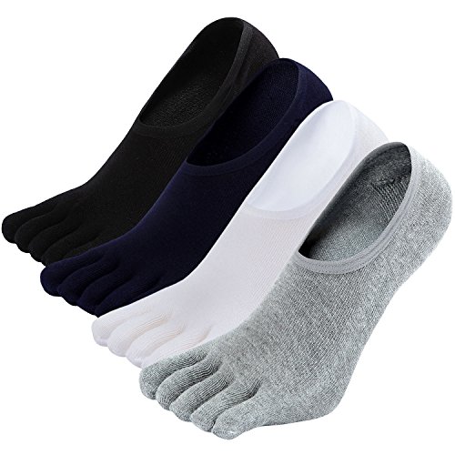 Hellomamma Toe Socks for Men No Show Running Five Finger Socks Invisible Low Cut for Boat Loafer Multicolor 9-11