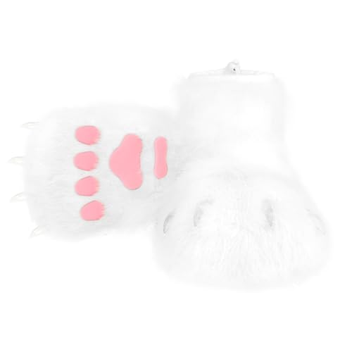 hbbhml Djur luddiga tofflor björn katt varg hund räv pälsdräkt fötter tass klo skor lurviga stövlar kostym tillbehör för vuxna barn, Vit2, One Size Women/One Size Men