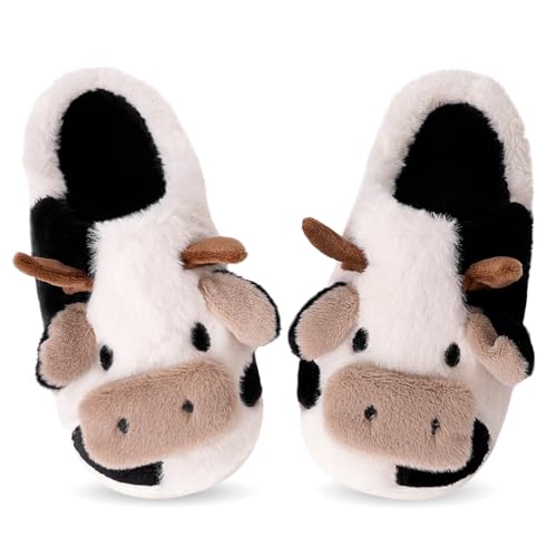 NIBESSER Kotofflor för kvinnor luddiga plysch bekväma tofflor vinter varma mysiga djur hus tofflor tjock sula mjuka kudde tofflor söta nya skor inomhus utomhus, Ko skor, 38.5 EU