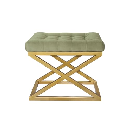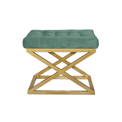 Atelier Del Soffa, snygg tofs med metallram, 50 cm bred, 42 cm höjd, 40 cm djup | 100% polyester babyface, elegant guld och grön design | Perfekt för moderna living utrymmen