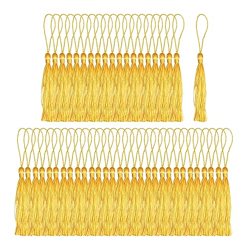 ATBUSS 50 stycken tofs-hängen, hemträdgårdsdekoration, tofs-hängsmycken, gör-det-själv-hantverk, smycken, bokmärken, soltofsar för födelsedag, semester, årsdag (guld)
