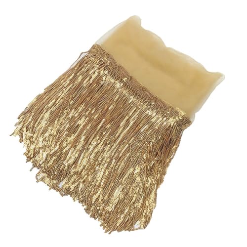 Pmnzdy 10 yards paljetter franskant 20 cm bred paljetter tofs fransar trim fransband tofsar trim dekorationsband sytillbehör för gör-det-själv hantverk kläder kostymer guld