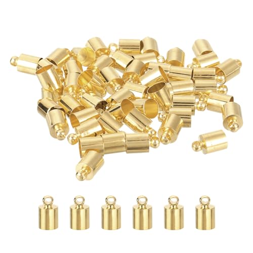 QUARKZMAN 50 st läder ändkåpor 6 mm OD fat kolumn för att göra tofs läderarmband, ljust guld