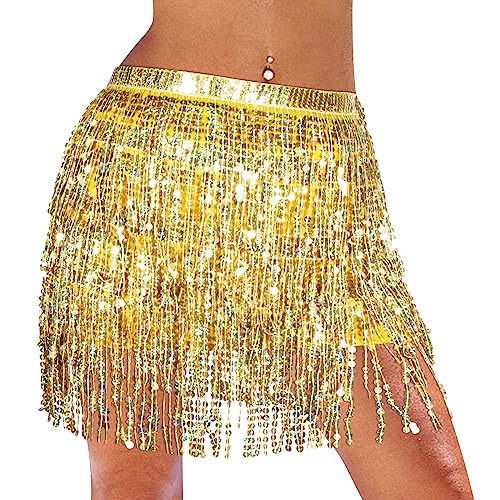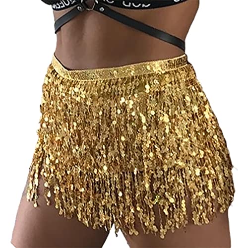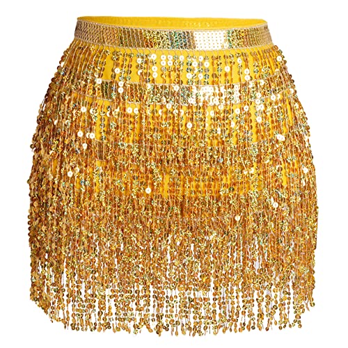 Lusofie Paljetter Dans Höft Kjol - Tofs Latin Gnistrande Frans Rave Outfit för Kvinnor Flickor, Guld, En Storlek