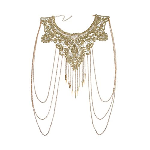 Amorar Body Chain Smycken Guld Spets Flerlagers Tofs Halsband Belly Chain Bikini Beach Body Belly Smycken för kvinnor Kroppssmycken BH Bust Chain