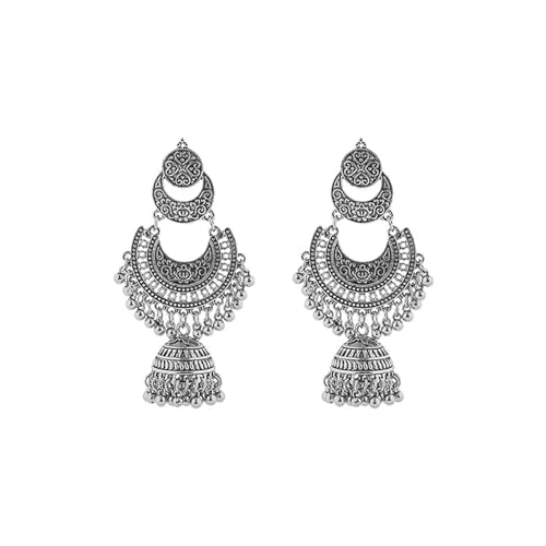 Traditionella indiska lager Jhumka dinglande örhängen för kvinnor flickor tofs klocka pärlor droppe vintage uttalande örhänge etnisk örhänge bohemiskt oxiderat Bollywood Jhumki smycken gåvor,
