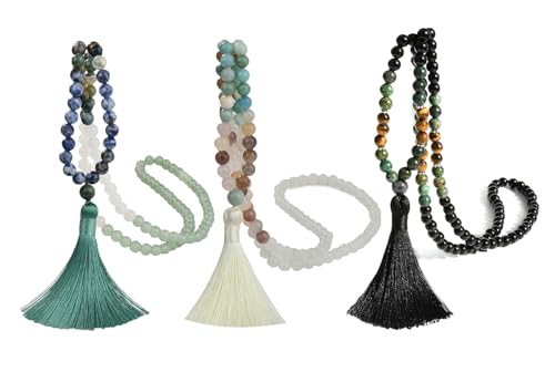 TMTGTS Halsband tofs 3 stycken mala-kedja 108 pärlor kedja böhmisk pärlor kedja tröja kedja buddhism kedja agat natursten smycken kedja för män kvinnor yoga reiki chakra healing (blandad 7#)