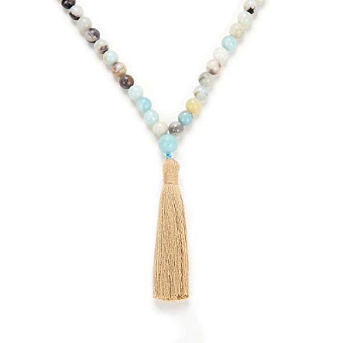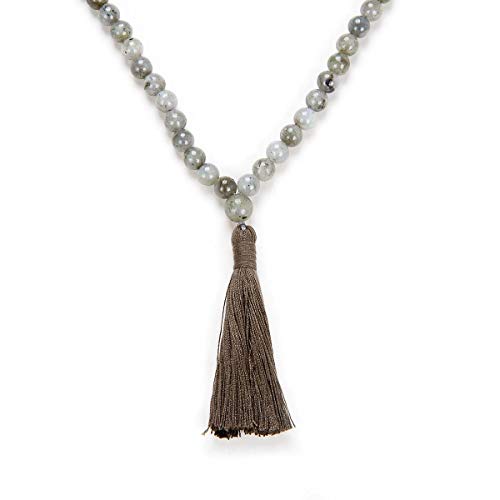 Yoga Halsband Smycken Pärlstav Lång Tofs Halsband Jaspis med 108 Mala-pärlor för kvinnor eller män
